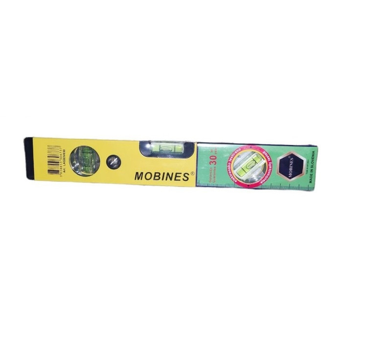 وسیلهی فوق یکی از محصولات تولیدی شرکت «موبینس» ( Mobines ) است. از این تراز کوچک به لطف این طول کم میتوان در فضاهایی با محدودیت مکانی استفاده کرد. این محصول وزن مناسبی دارد و کار با آن موجب آزار کاربر نمیشود. از دیگر ویژگیهای این تراز میتوان به وجود 3 محور روی آن اشاره کرد. این محورها در زوایای 0 و 45 و 90 درجه قرار دارند و کاربر بهراحتی میتواند با مشاهدهی وضعیت حباب درون کپسولها از میزان شیب سطح آگاه شود. در این ابزار نیز آهنربایی تعبیه شده است که خاصیتی آهنربایی به تراز بخشیده است. این ویژگی باعث شده است تا بتوان تراز را روی بخشهای آهنی نگه داشت. یکی از بهترین ابزارها برای تشخیص وجود شیب، تراز است. این ابزارها انواع مختلفی دارند که در نوع سادهی آنها از یک سیال دارای حباب و خط تراز برای تشخیص شیب استفاده میشود.