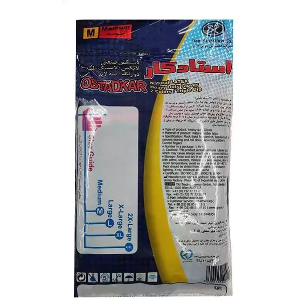 دستکش لاستیکی استادکار سایز لارج