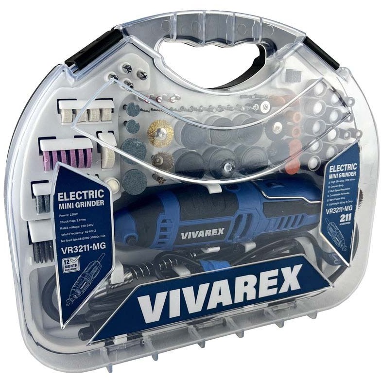 فرز مینیاتوری 211 پارچه ویوارکس مدل VR3211-MG مجهز به موتوری با توان 220 وات است که با ولتاژ 220 – 240 ولت و فرکانس 50 – 60 هرتز کار می کند. سرعت این فرز در حالت آزاد 12000 تا 36000 دور در دقیقه و سایز کولت این محصول 3.2 میلی متر می باشد. فرز مدل VR3211-MG دارای دیمر 6 حالته نیز می باشد که با تنظیم سرعت به کارایی محصول کمک شایانی می کند.طراحی این محصول ارگونومیک بوده و برای کارهای طولانی بسیار مناسب است. در بدنه این محصول از پلاستیک استفاده شده که علاوه بر وزن کمتر از لغزش…