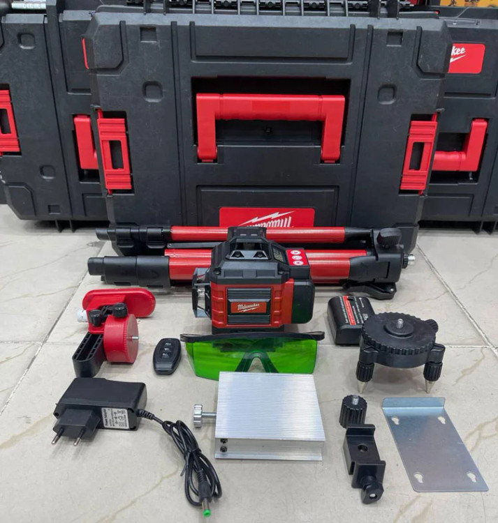 یکی از ابزارهای پرکاربرد بیشتر مشاغل که جهت بالا بردن کیفیت کار،بالابردن سرعت و دقت کار مورد استفاده قرار میگیرد تراز لیزری می باشد، تراز لیزری دو نوع نور دارد نور قرمز و نور سبز که امروز بیشتر کاربران نور سبز را به لحاظ دید و برد بیشتری که دارد انتخاب میکنند،تراز لیزری میلواکی دارای 4 بعد با 16 لاین خط نور می باشد، این محصول نورسبز بوده و از قابلیت خود تراز بودن نیز دارد به طوری که هنگام ناتراز به کاربر هشدار می دهداز دیگر پارامترهای دیگر این محصول میتوان به صفحه لمسی که میزان شارژ باطری را نشان میدهد و همچنین با صفحه نمایش لمسی که دارد میتوانید تعداد خط ها را زیاد و کم کنید و یا شدت نور را افزایش و کم کنید، این محصول دارای ریموت کنترل می باشد همچنين با استفاده از بارکد پشت ریموت میتوانید آن را به گوشی وصل کنید و تعداد لاین ها را کنترل کنید، این محصول دارای 2 عدد باطری 21 ولت ،سه پایه چرخشی، آسانسوری، تلسکوپی، ریموت، آهن ربا، گیره آویزان،عینک، جعبه محکم و مخصوص نیز دارد، اگر قصد خرید تراز لیزر نور سبز با کیفیت و امکانات هستید پیشنهاد ما این محصول می باشد